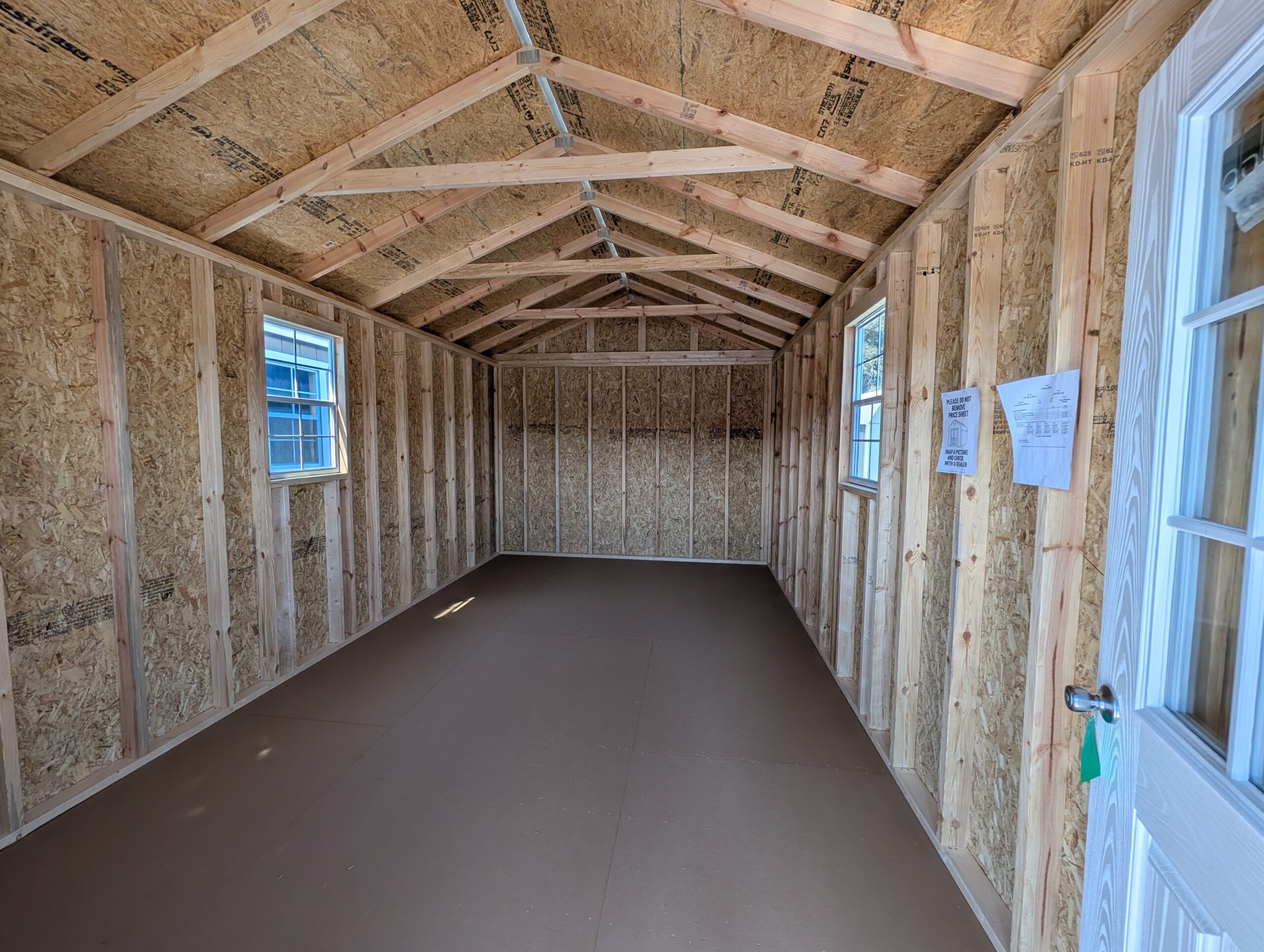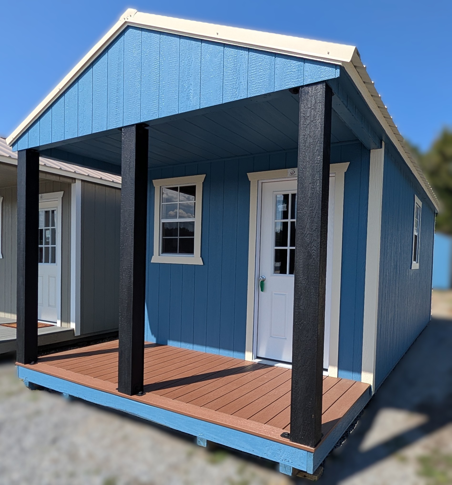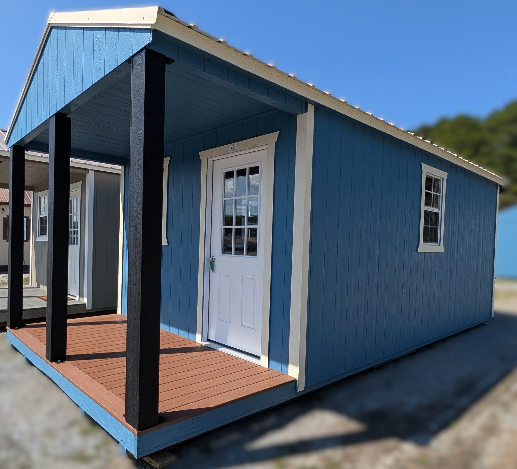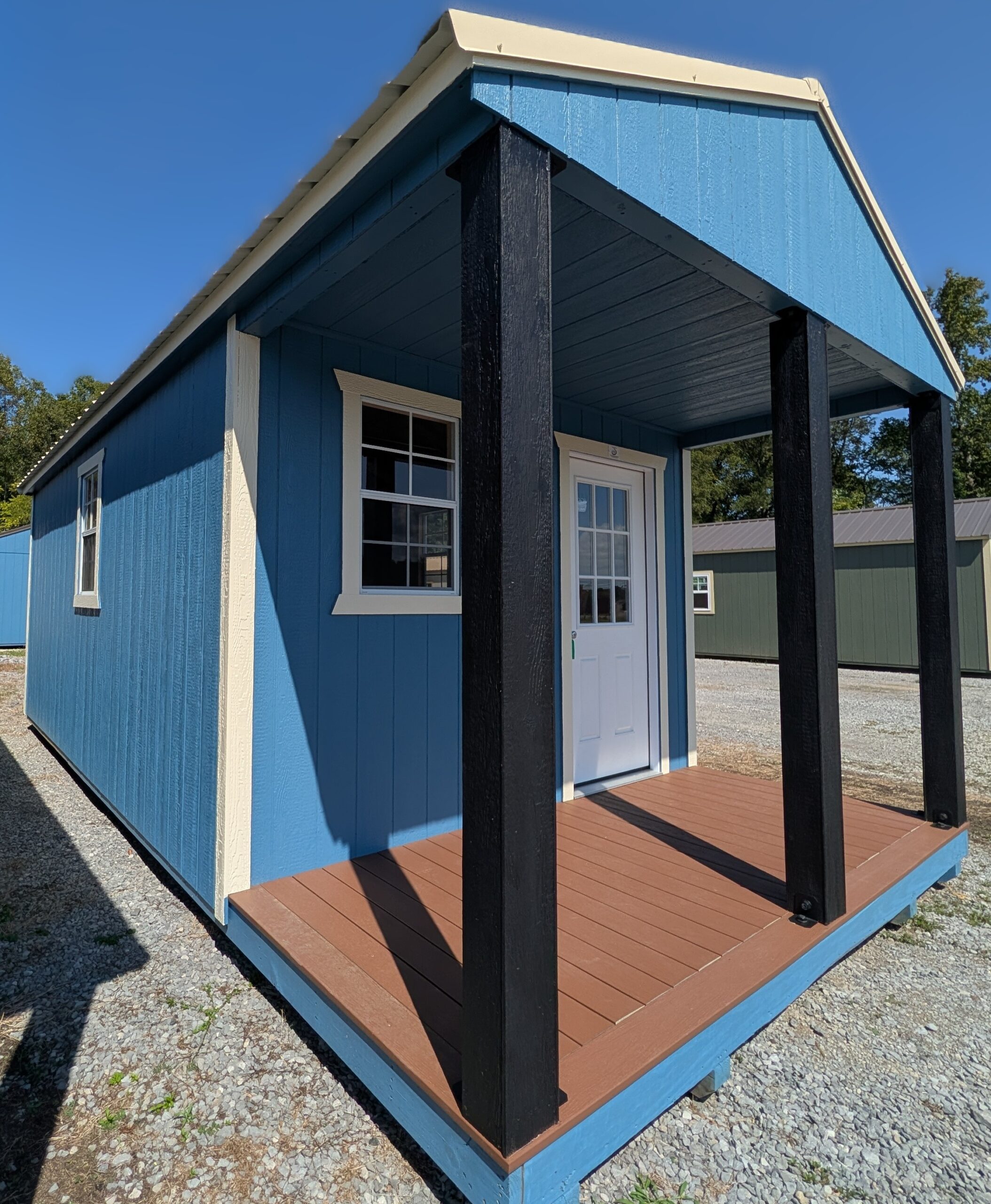 12X24 Cabin. 3 x 24″ X 36″ Shed Window (WHITE). 9-Lite Entry Door. Black Posts