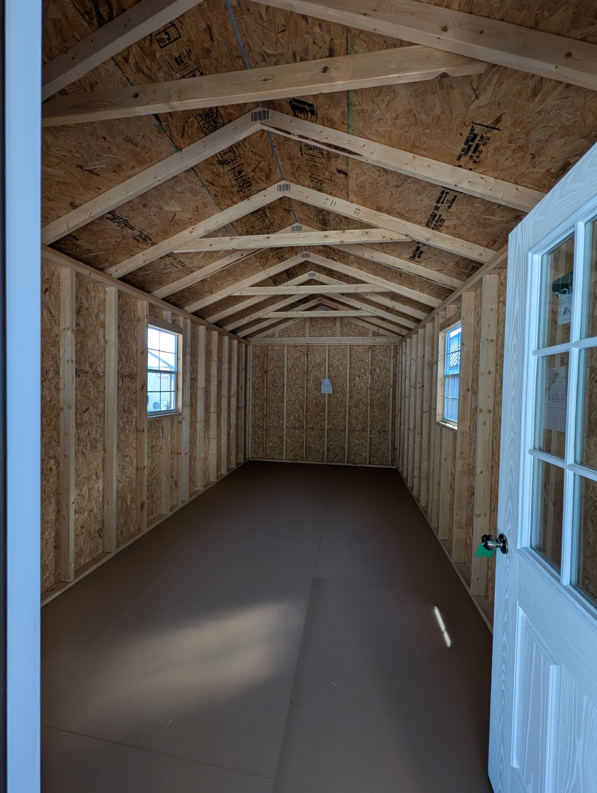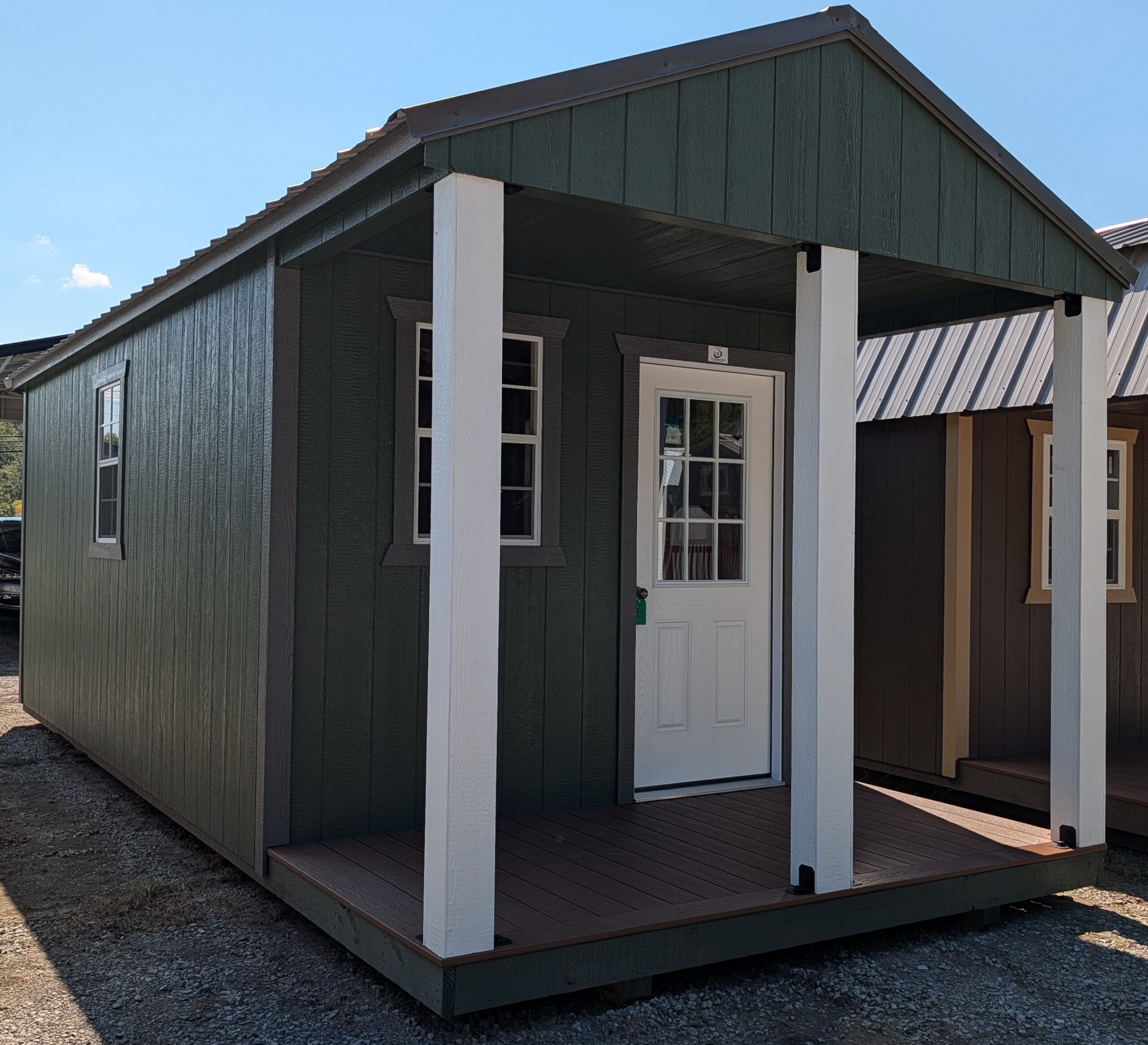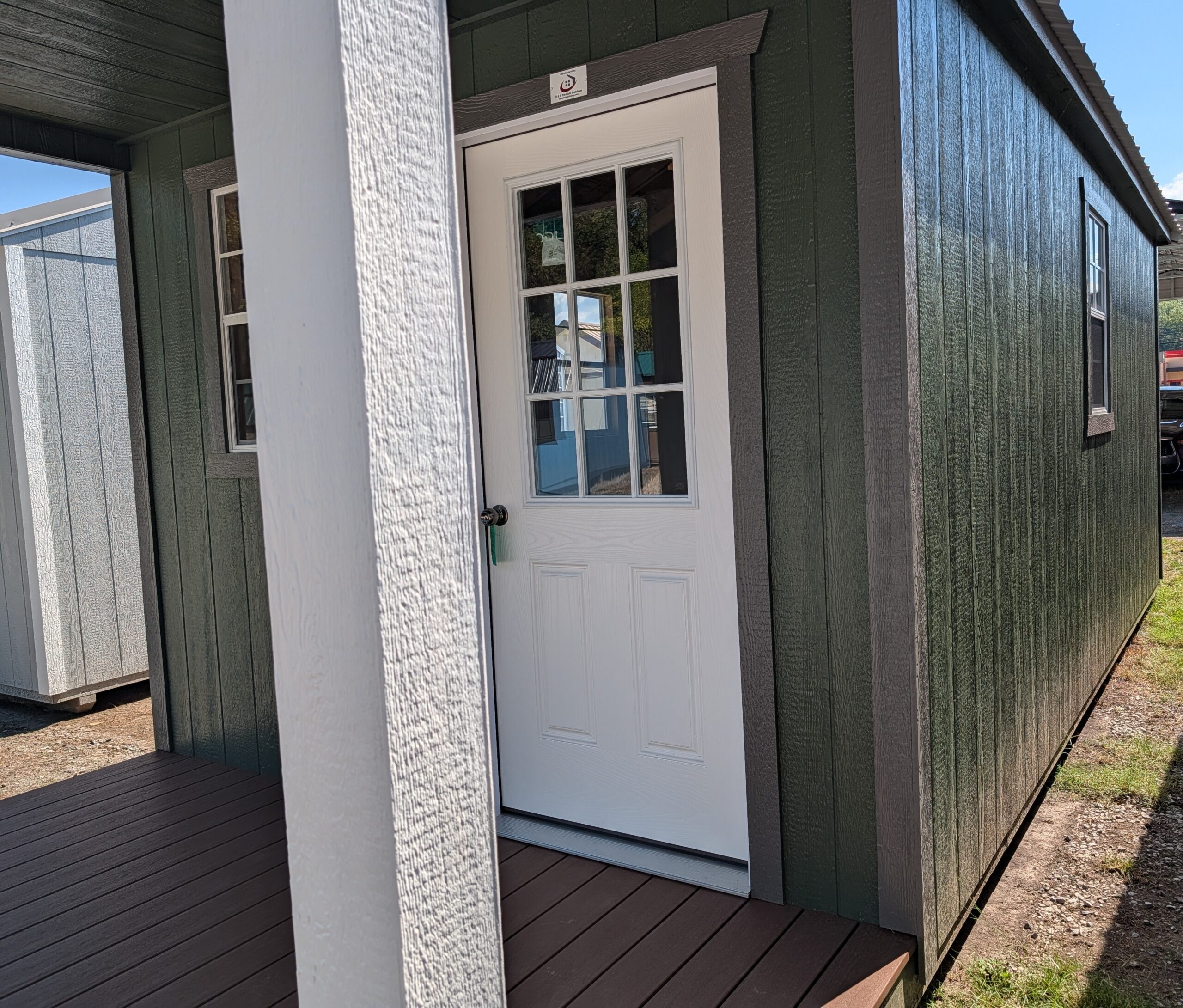 10×24 Cabin. 3 x 24″ X 36″ Shed Window (WHITE). 9-Lite Entry Door. White Posts