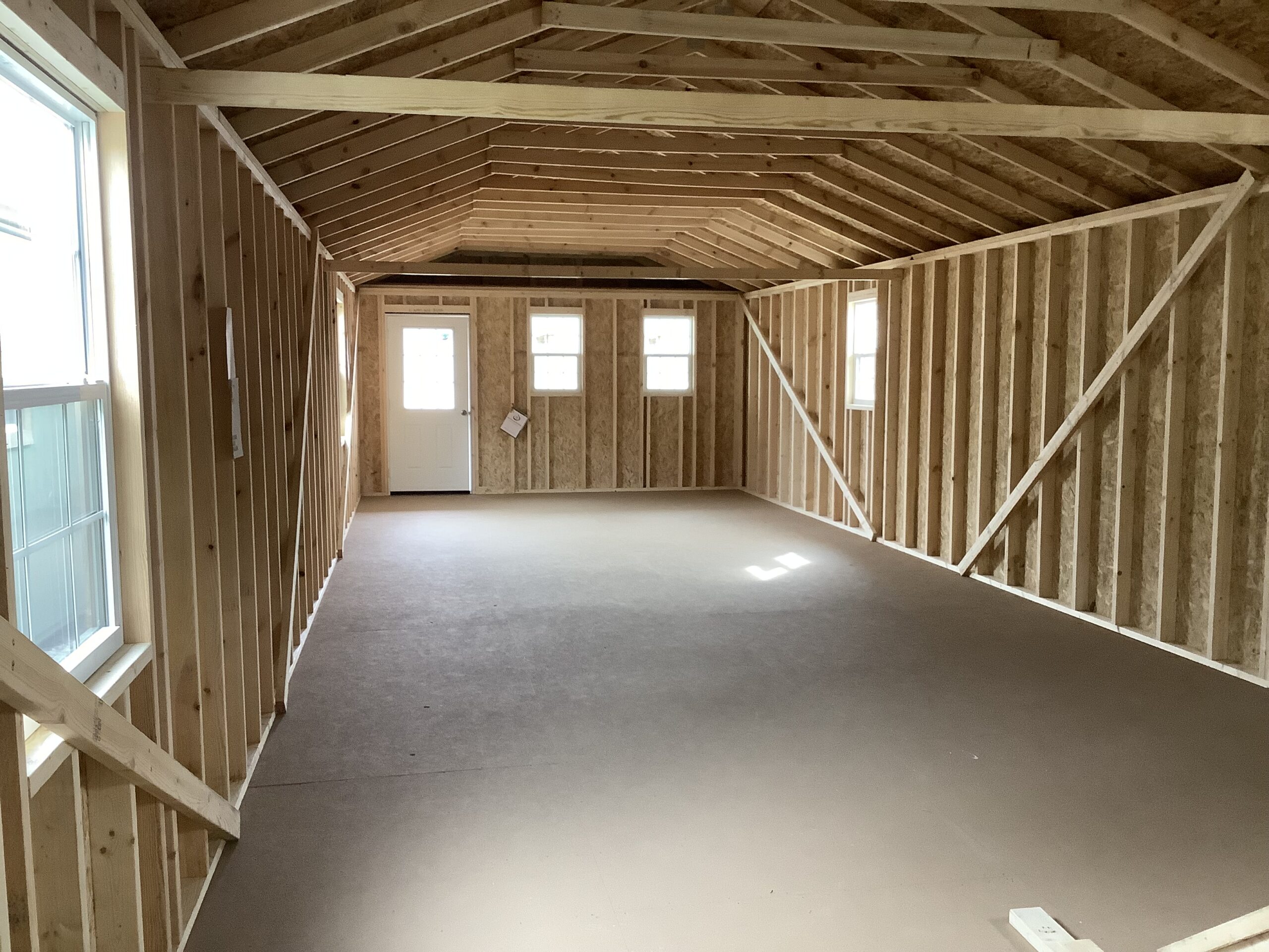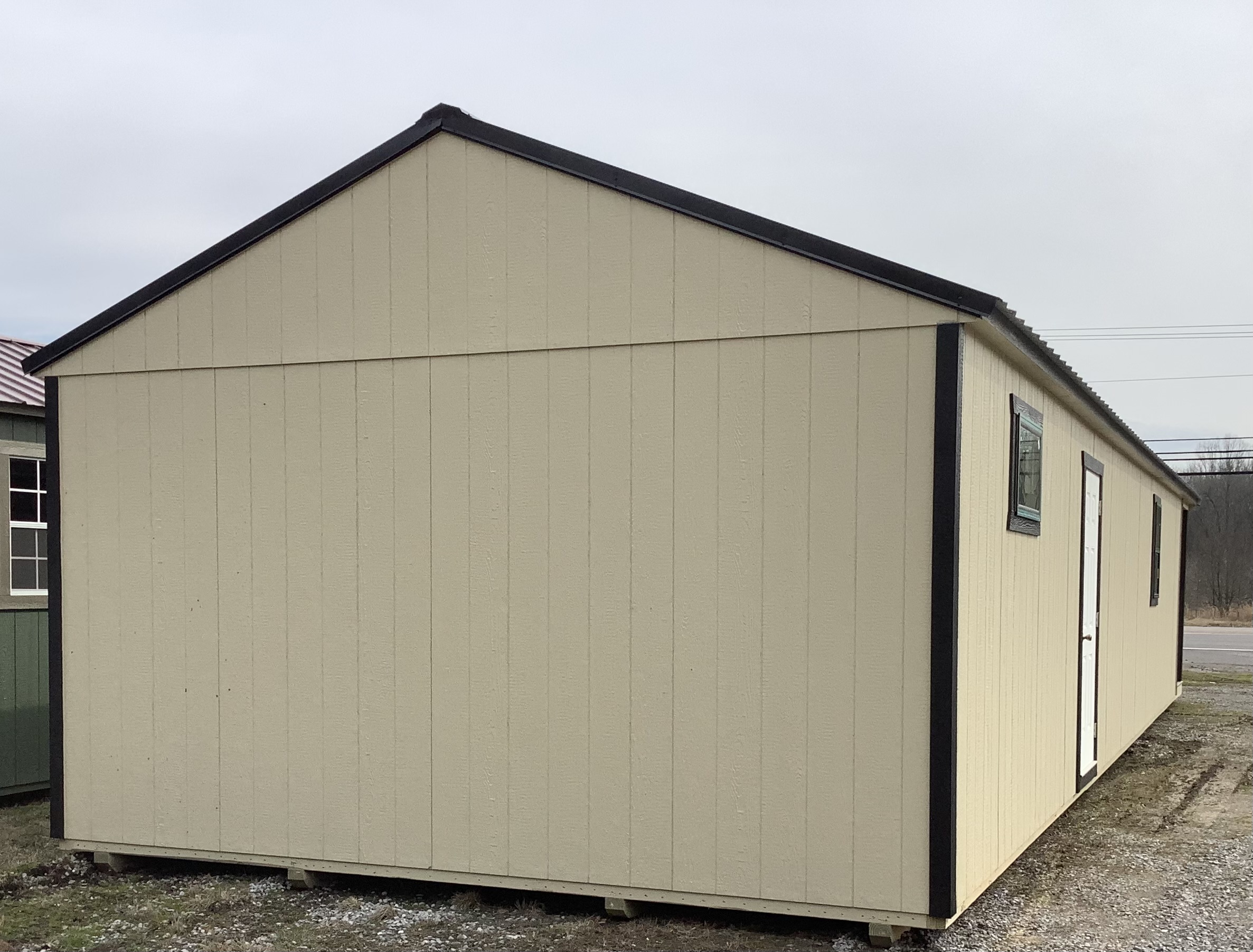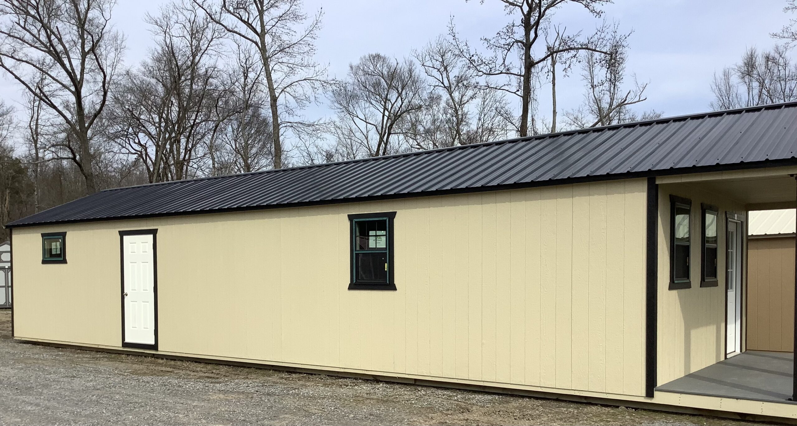 16′ W x 52′ L 1 x 9-Lite Entry Door 1 x 18×29 Thermal Transom Window (BLACK) 3 x 24×36 (BLACK) Thermal Window 2 x 36×48 (BLACK) Thermal Window 1 x Solid Panel Entry Door 1 x Black Posts 1 x Tinted windows (ask Caleb) 1 x Non Tinted