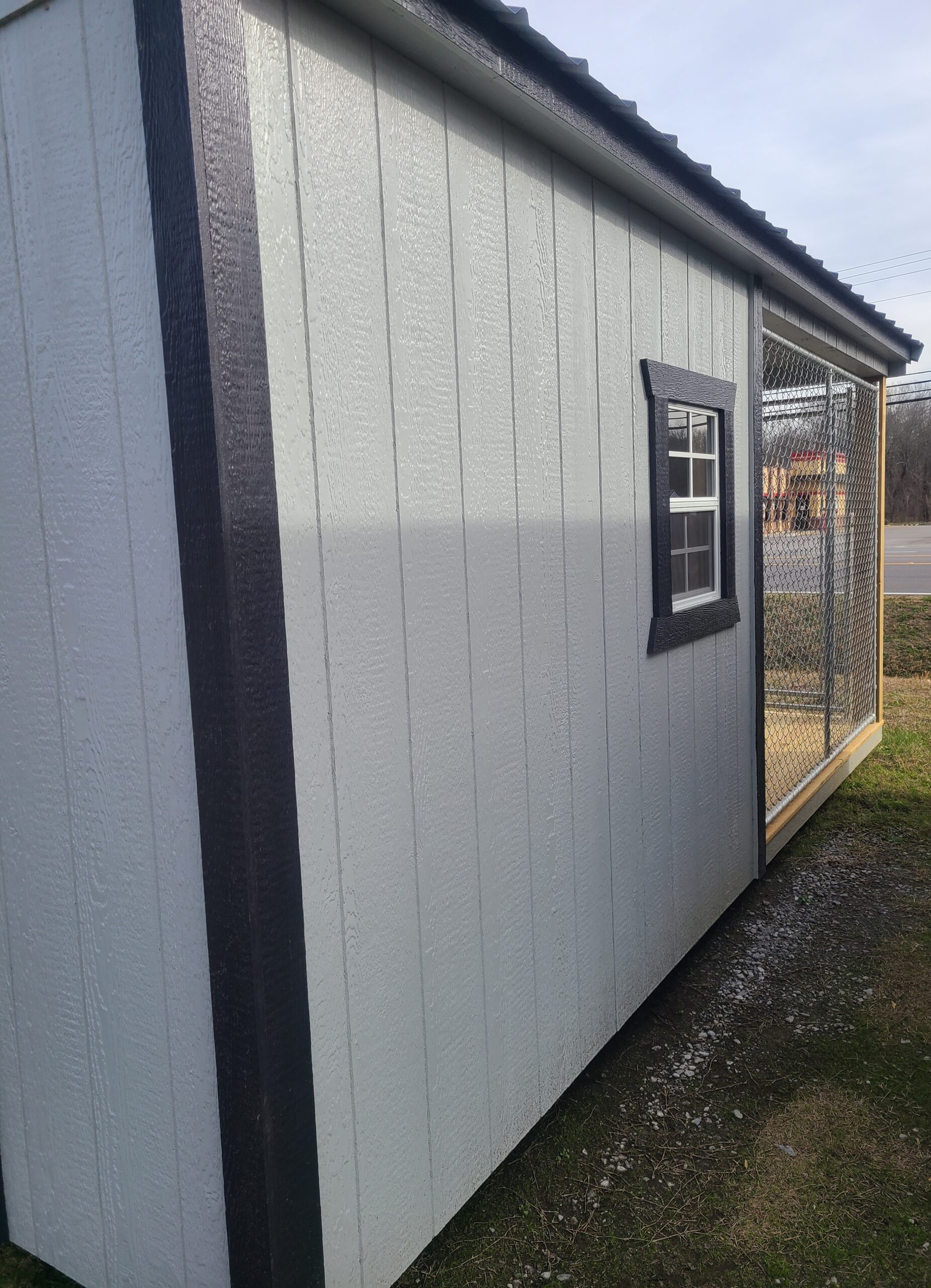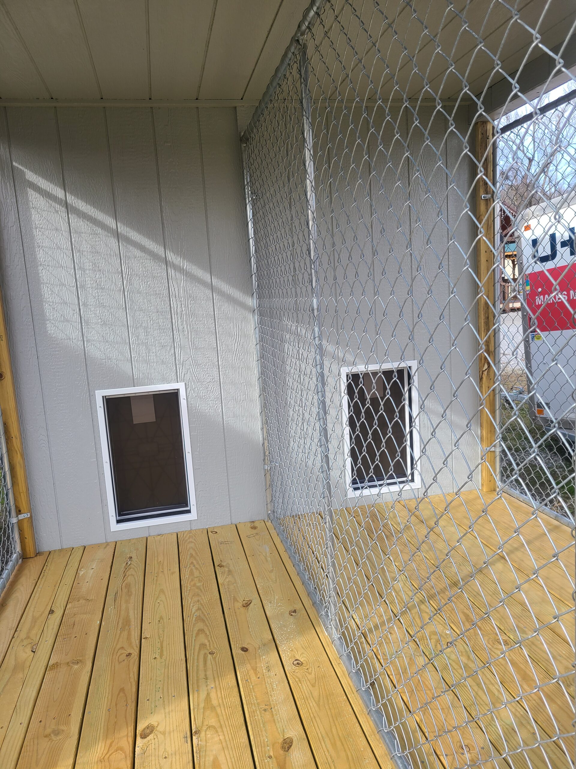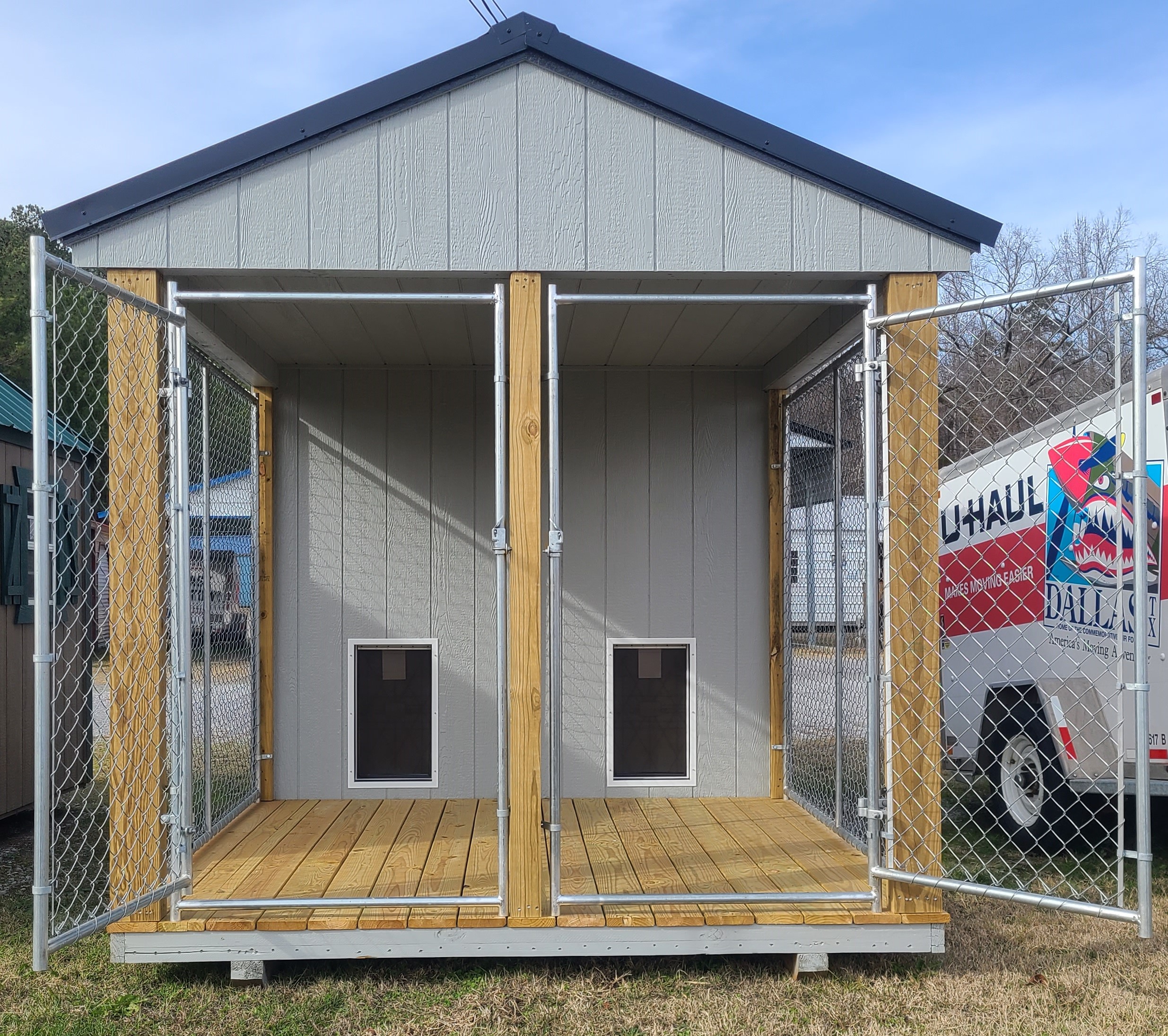 8×16 2 Bay Dog Kennel. 2 doggie doors. 2 windows. 2 chain link gates. Single barn style door. .