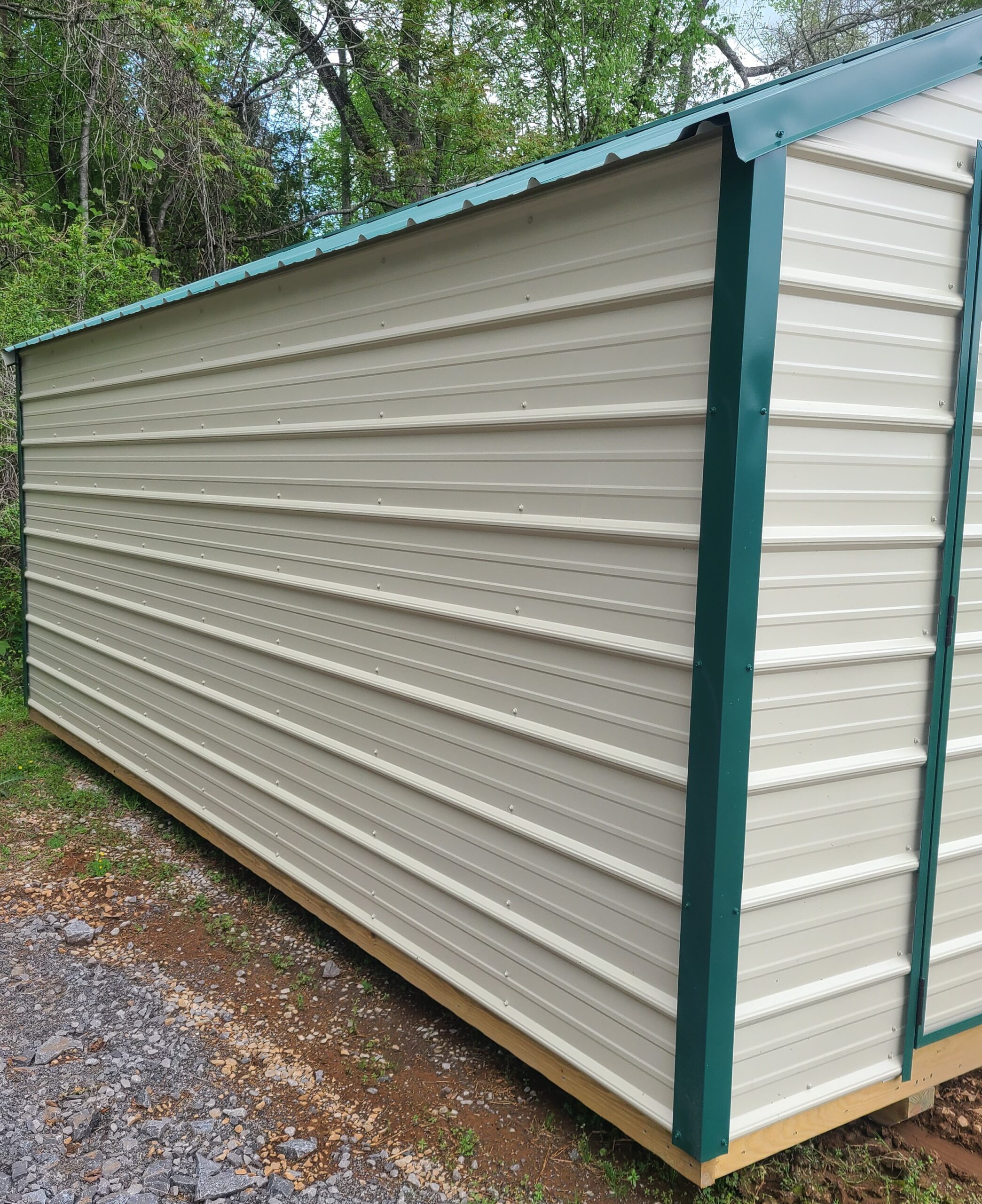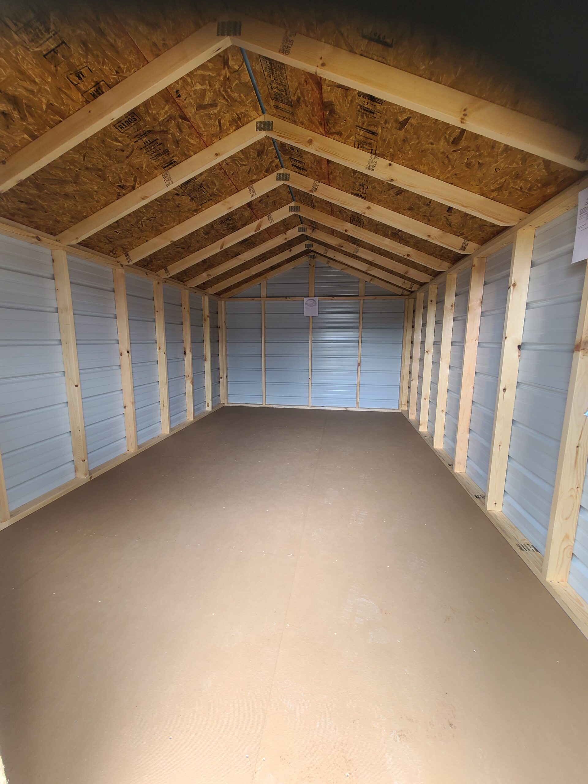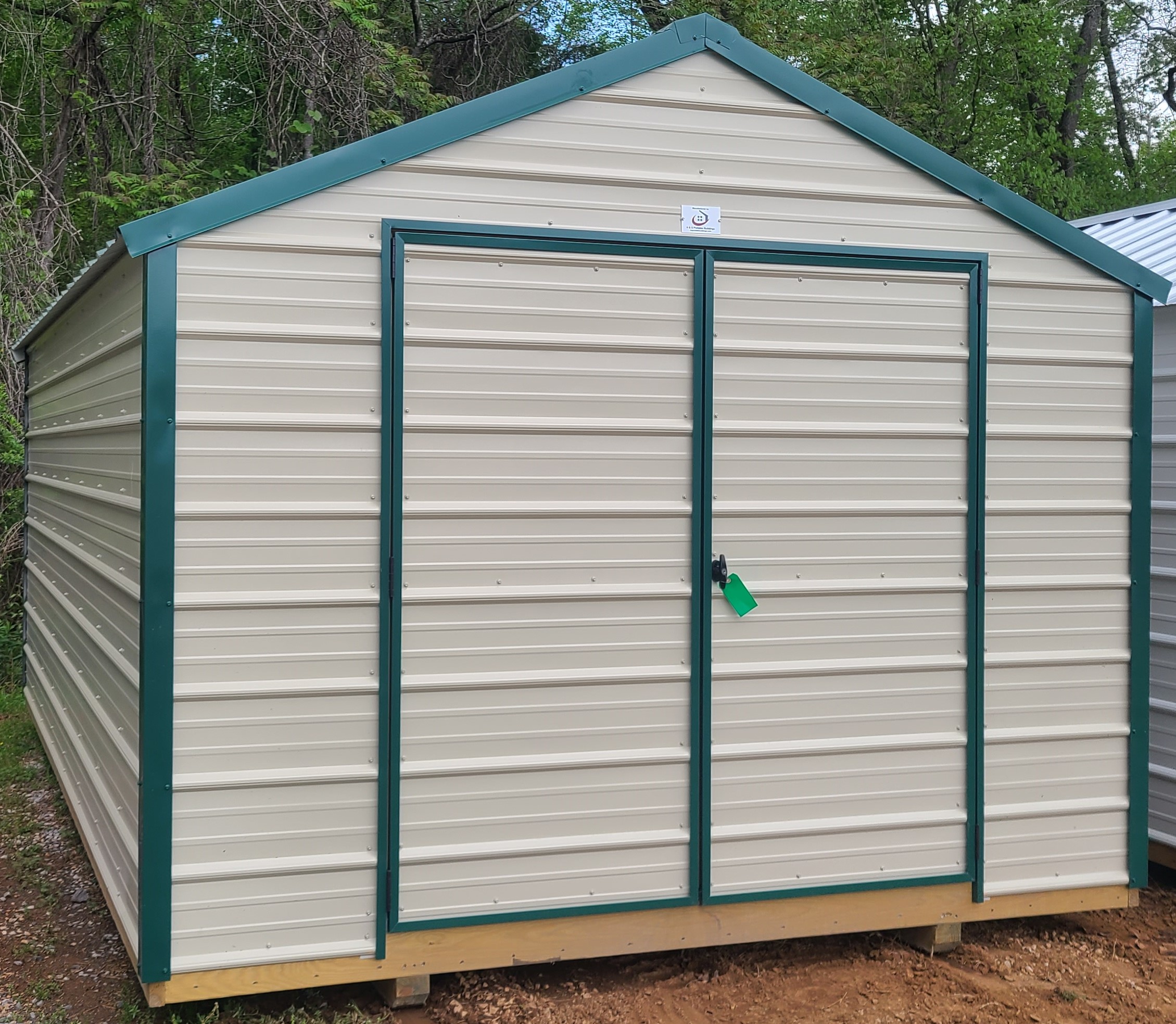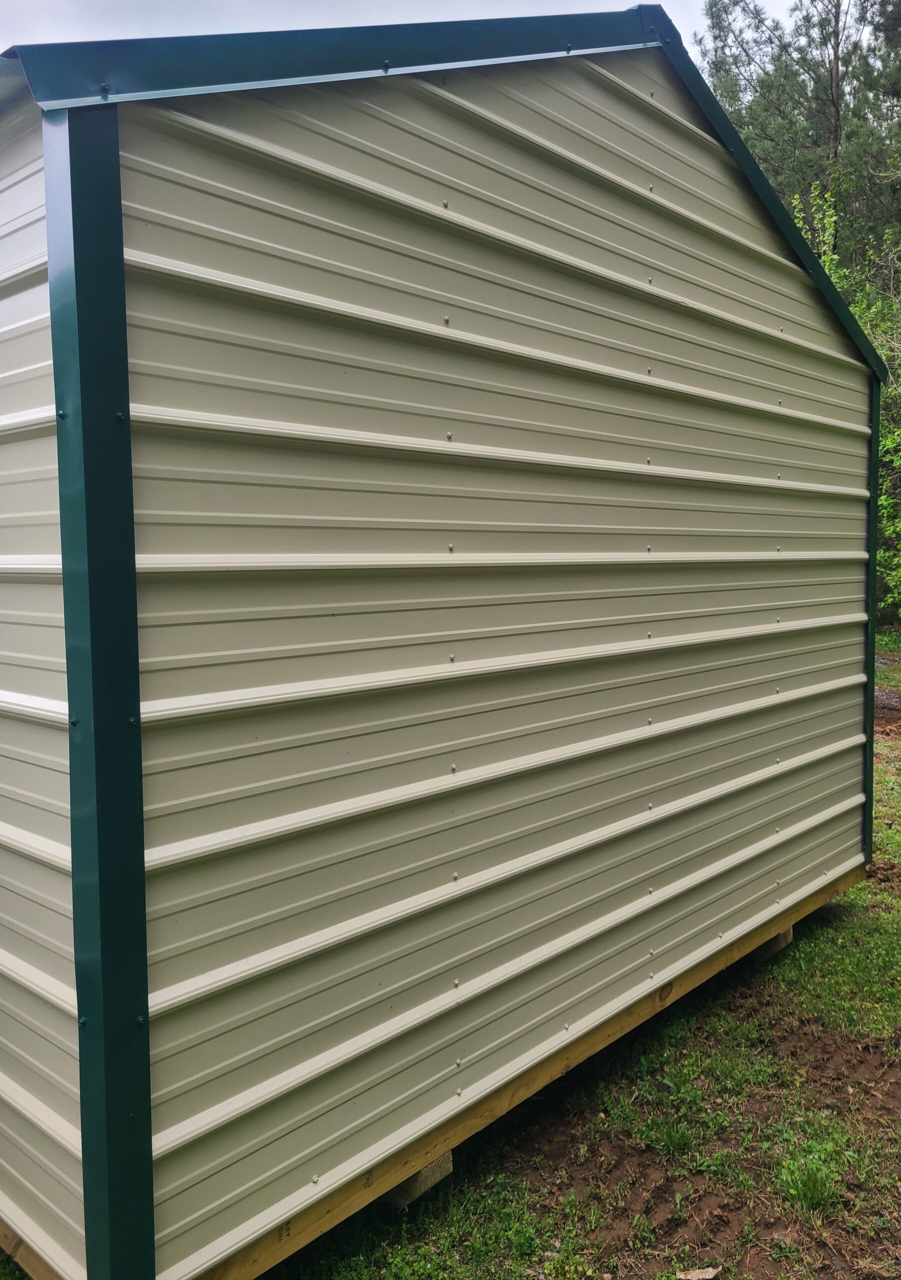 10×16 Economy metal shed. 69″ wall height. 6′ metal double doors. Premium 2×4 studs every 24″. Exterior grade 2×6 floor joists every 16″. Free set-up and delivery within 50 miles of our lot.