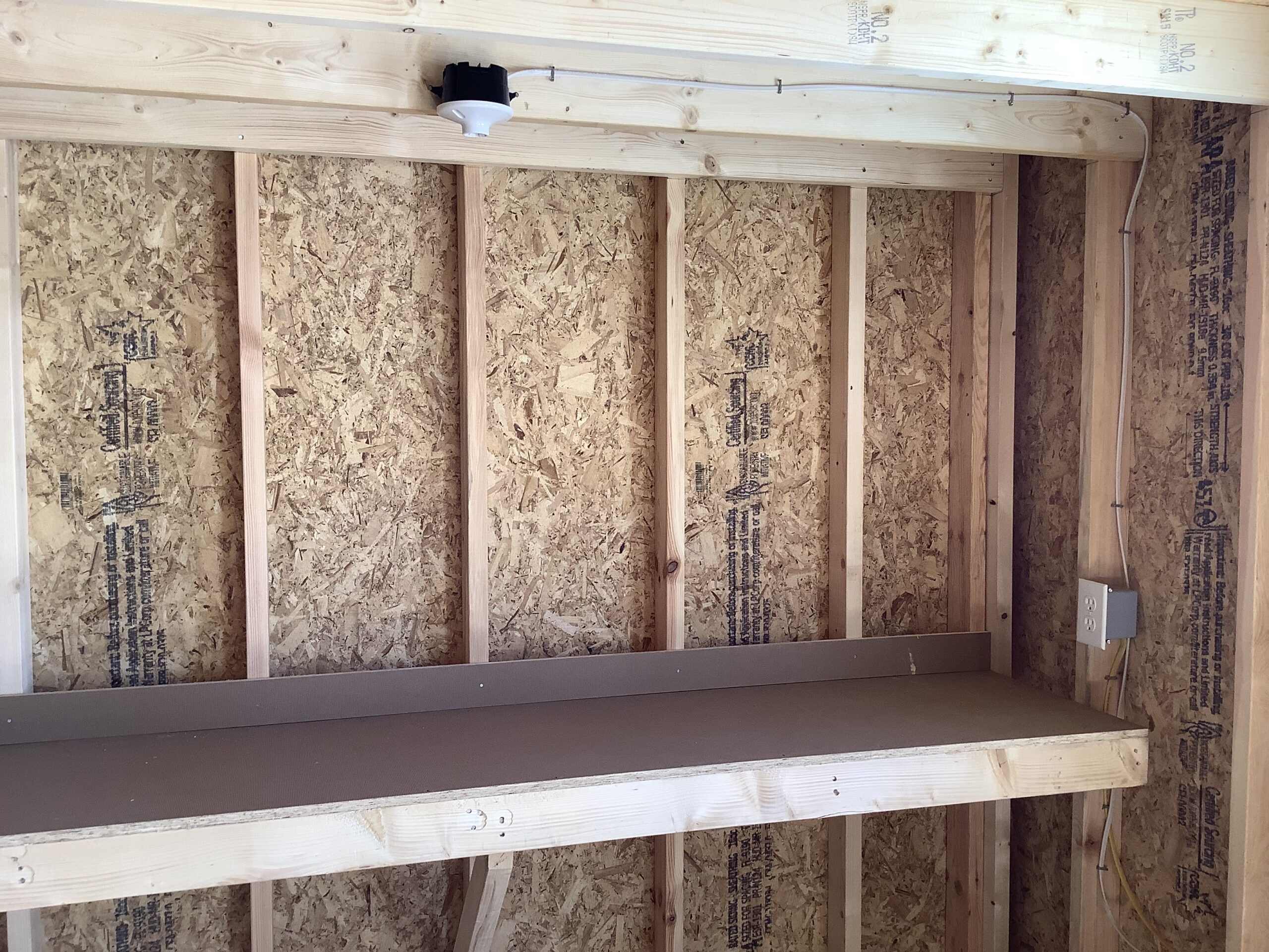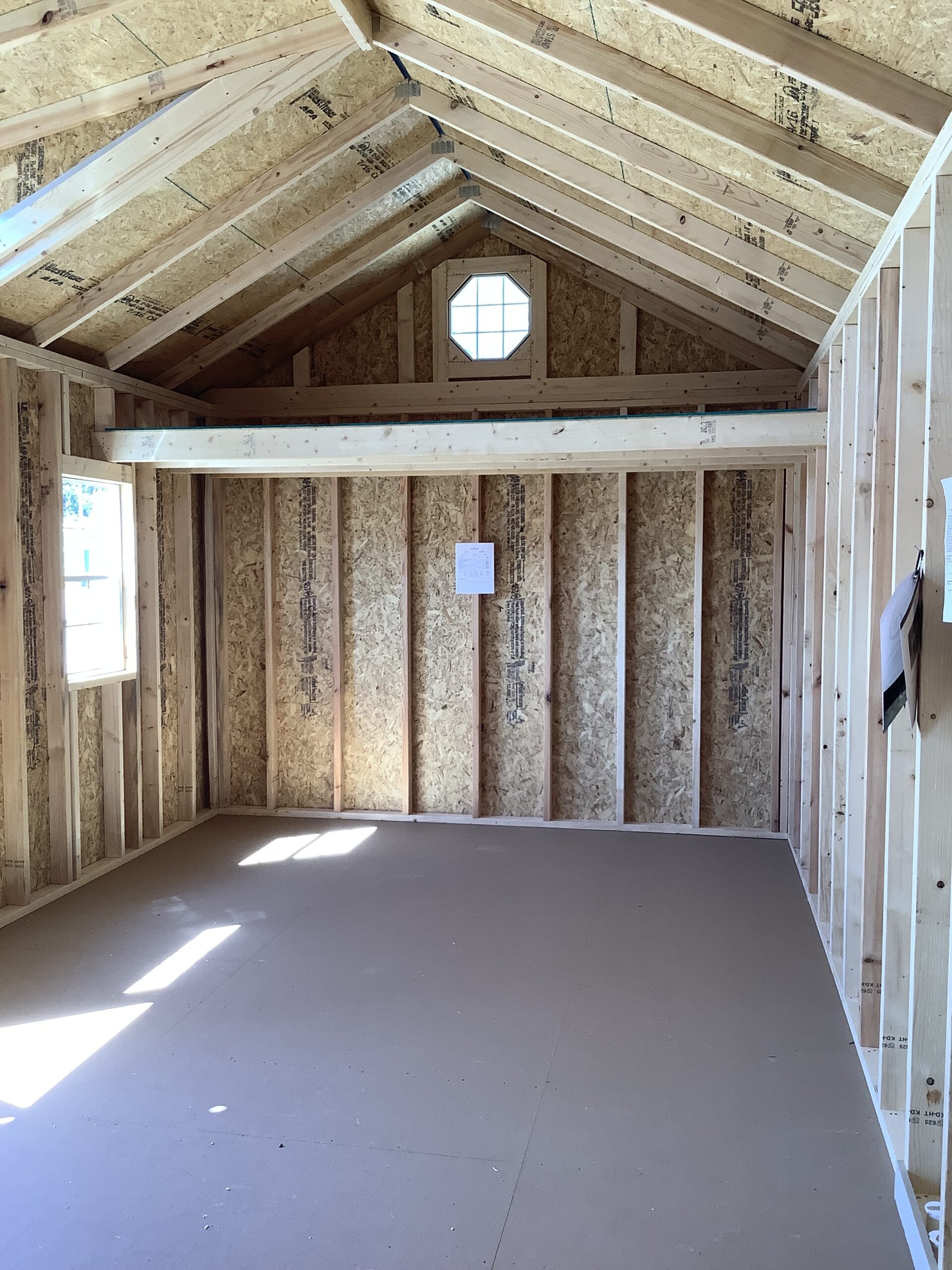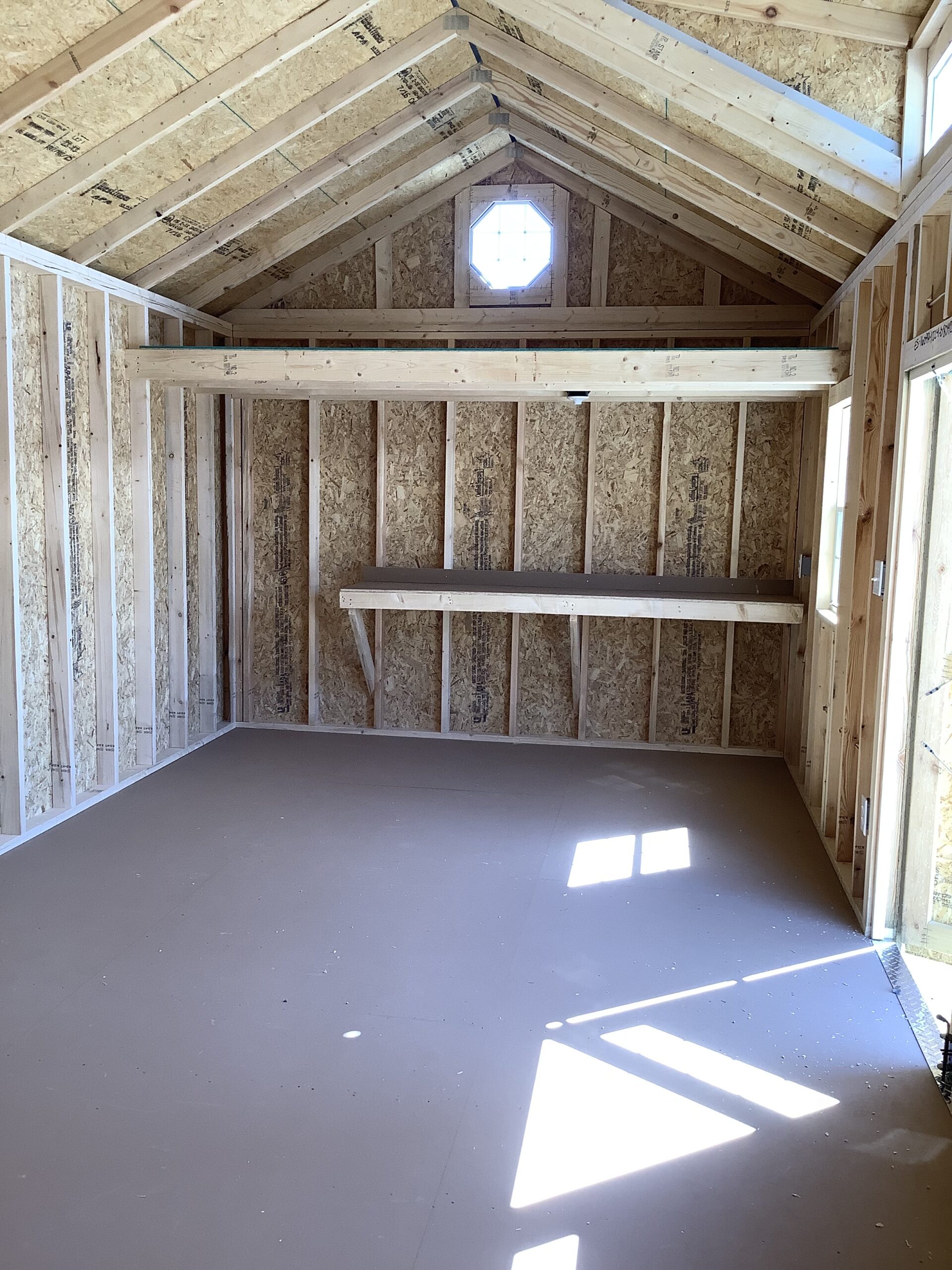 2′ W x 24′ L 2 x 18″ Octagon Window (WHITE) 2 x 24″ X 36″ Shed Window (WHITE) (with Wild Grasses Flowerbox, Wild Grasses Shutters) 1 x Heavy Duty Workbench 2 x Interior Light 2 x Exterior Lamp 1 x Switch/Outlet Combo 1 x 110 Receptacle 1 x Transom Doors 2 x 12′ Wide Loft Space 1 x 15 Lite Shed Dormer 1 x Any Color Option On Doors 1 x Wild