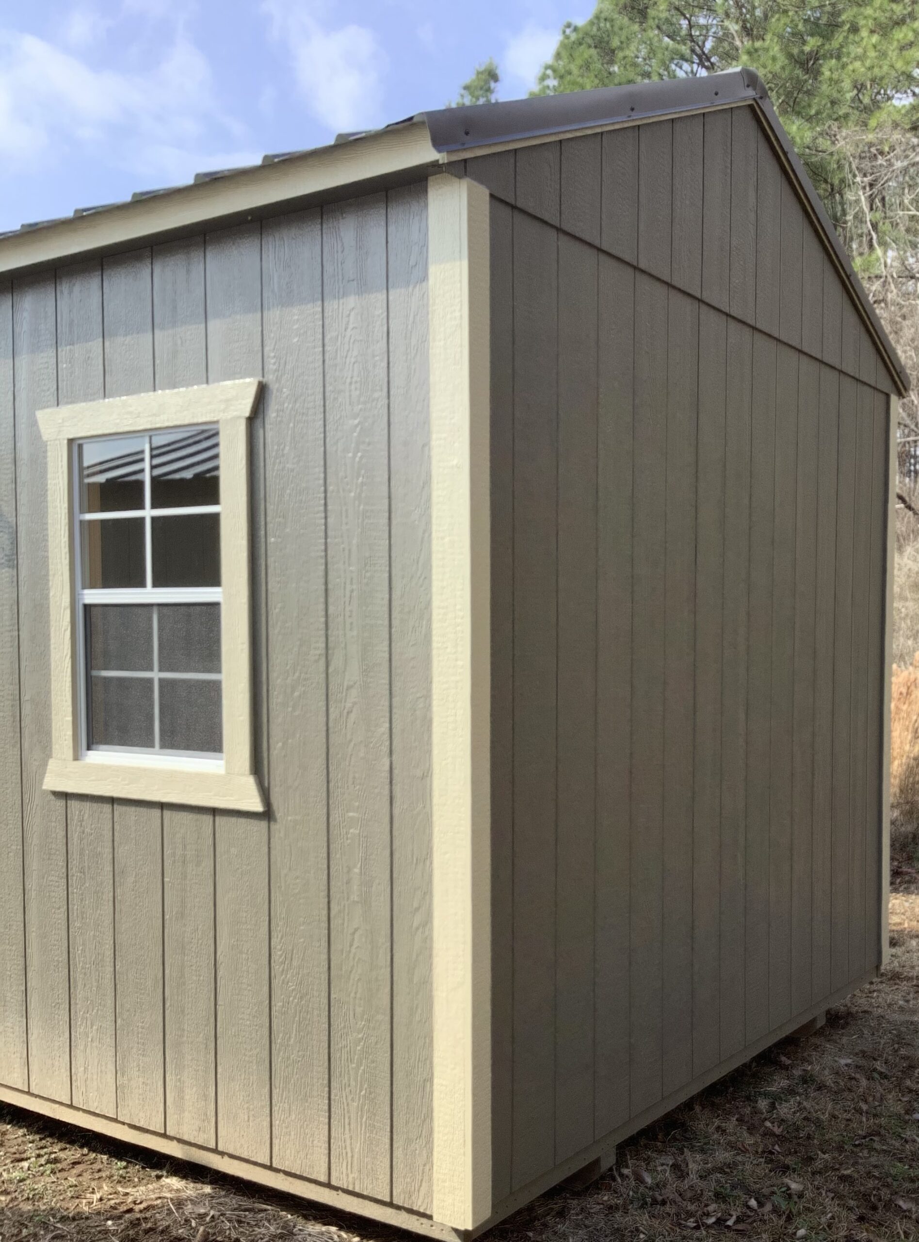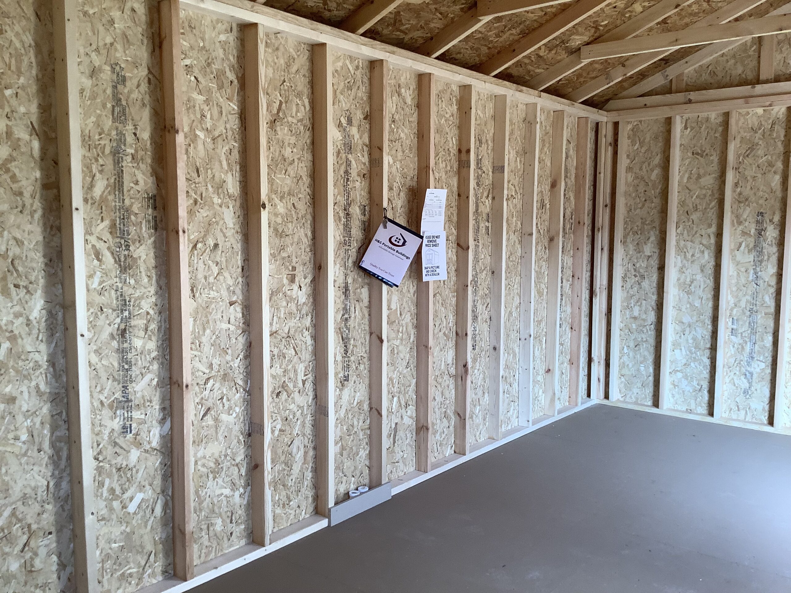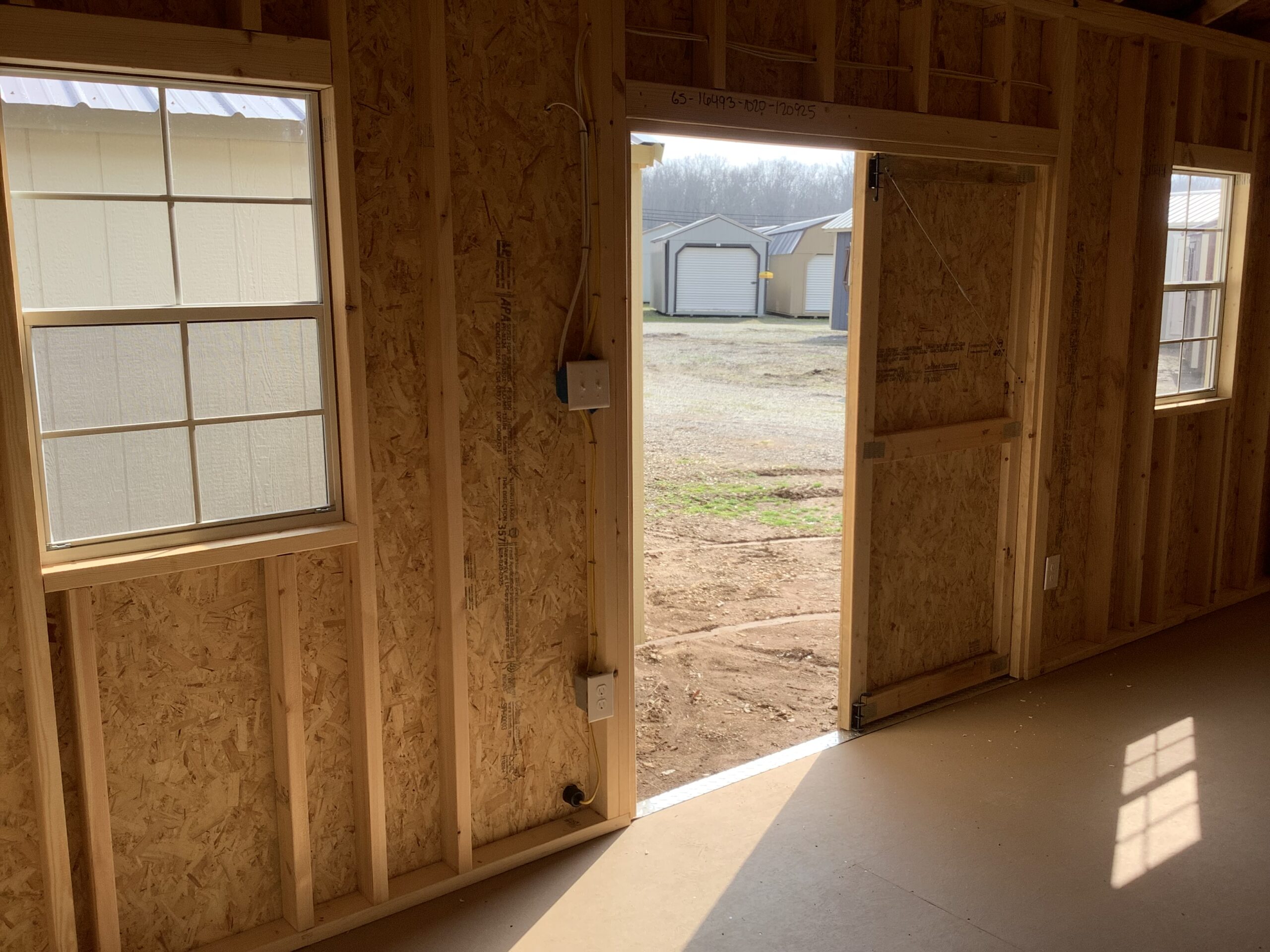 10′ W x 20′ L 2 x 24″ X 36″ Shed Window (WHITE) 1 x 72″ Wood Barn Doors 2 x Exterior Lamp 1 x 110 Receptacle 1 x Switch/Outlet Combo 1 x Interior Light