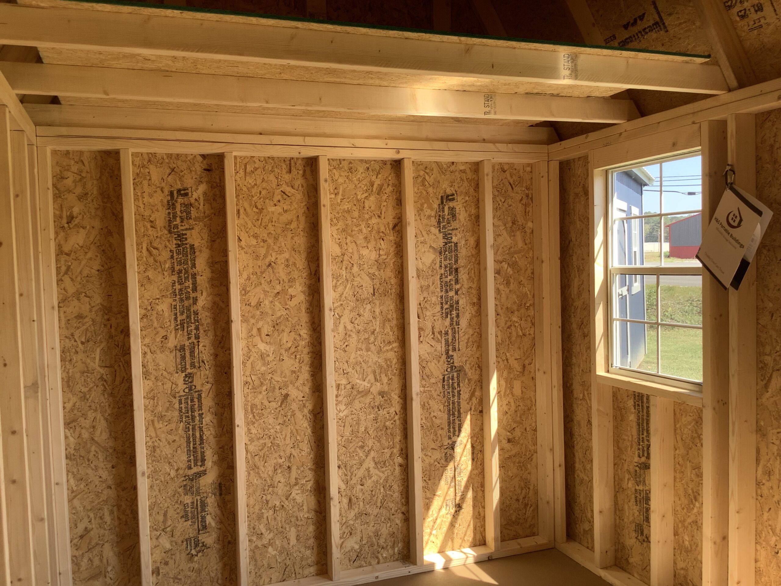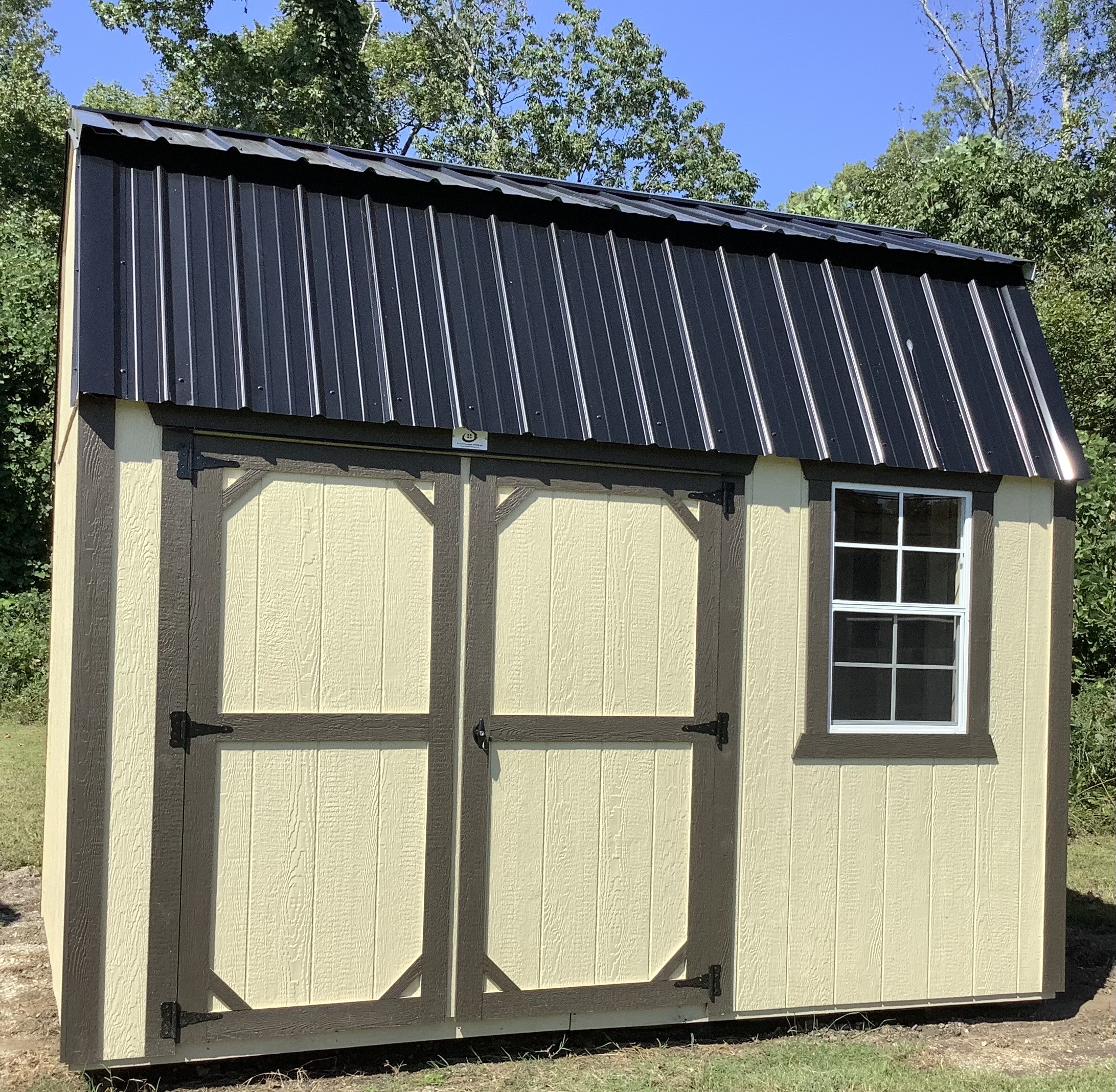 8′ W x 12′ L 1 x 72″ Wood Barn Doors 1 x 24″ X 36″ Shed Window (WHITE) 2 x 8′ Wide Loft Space