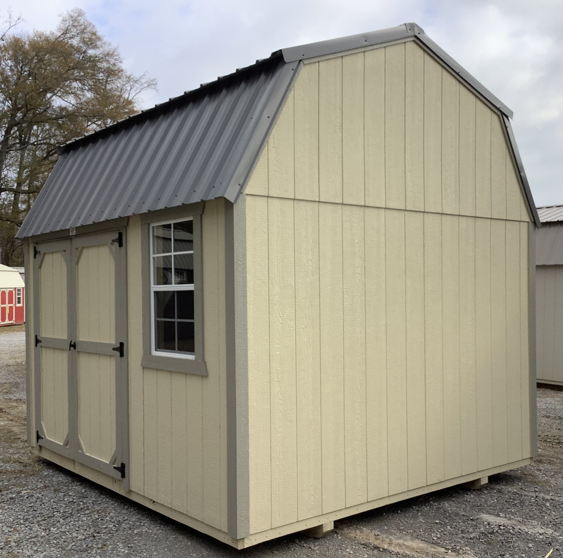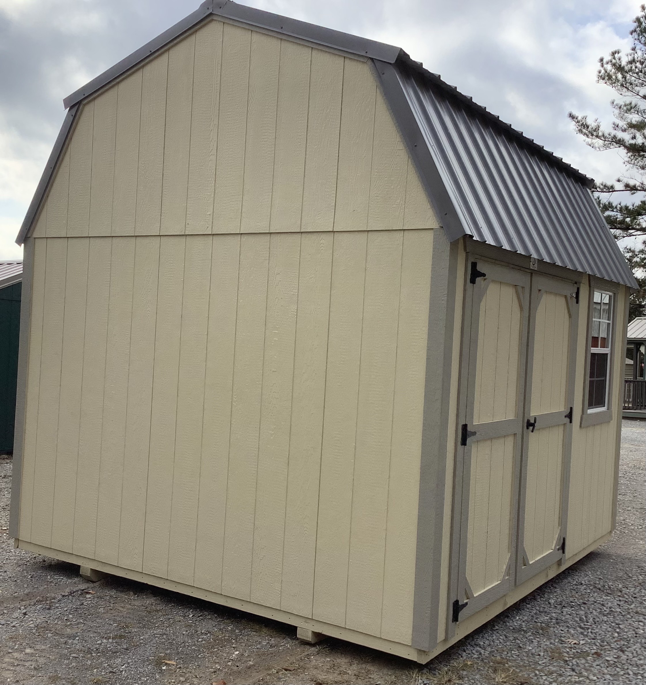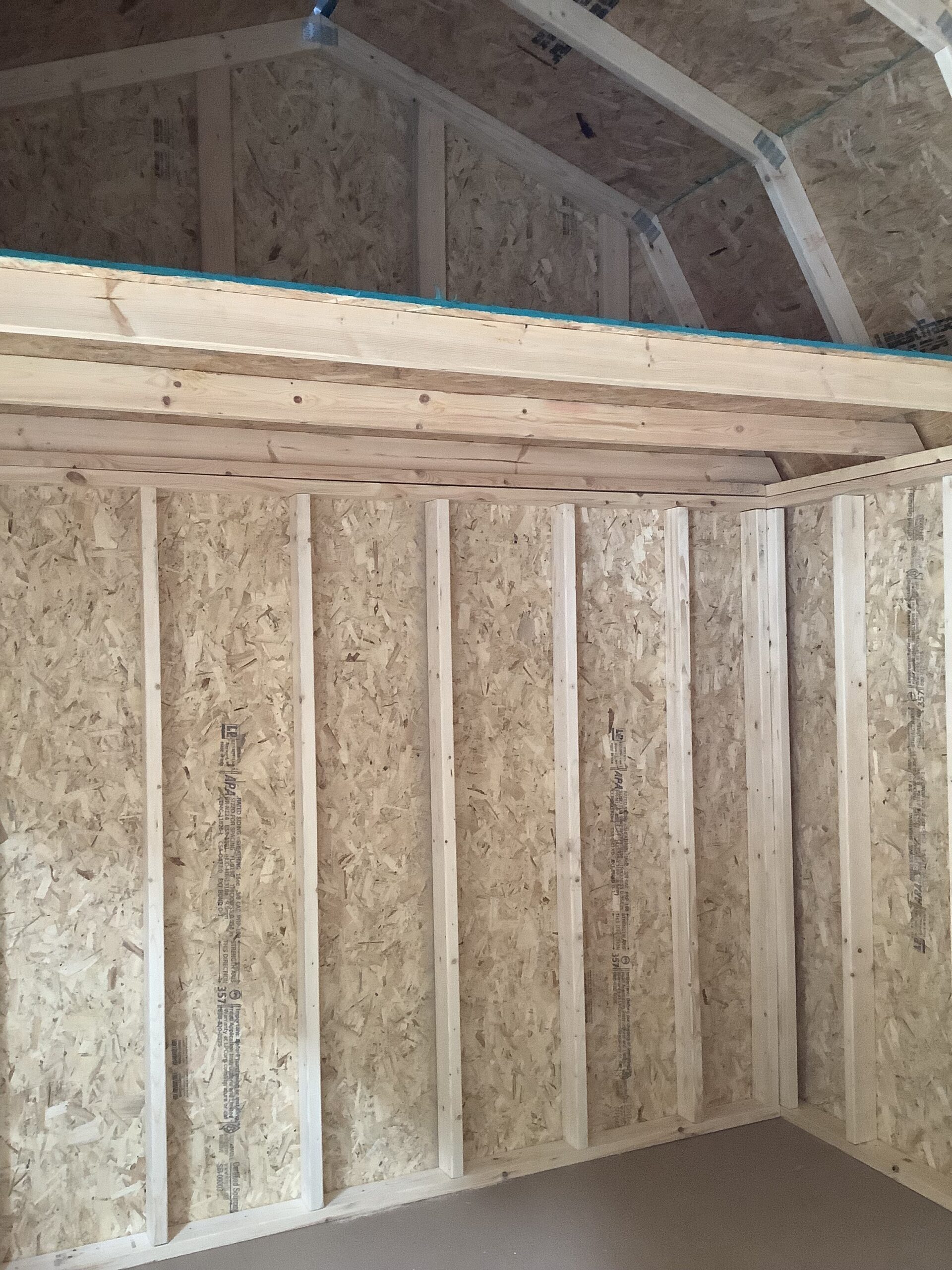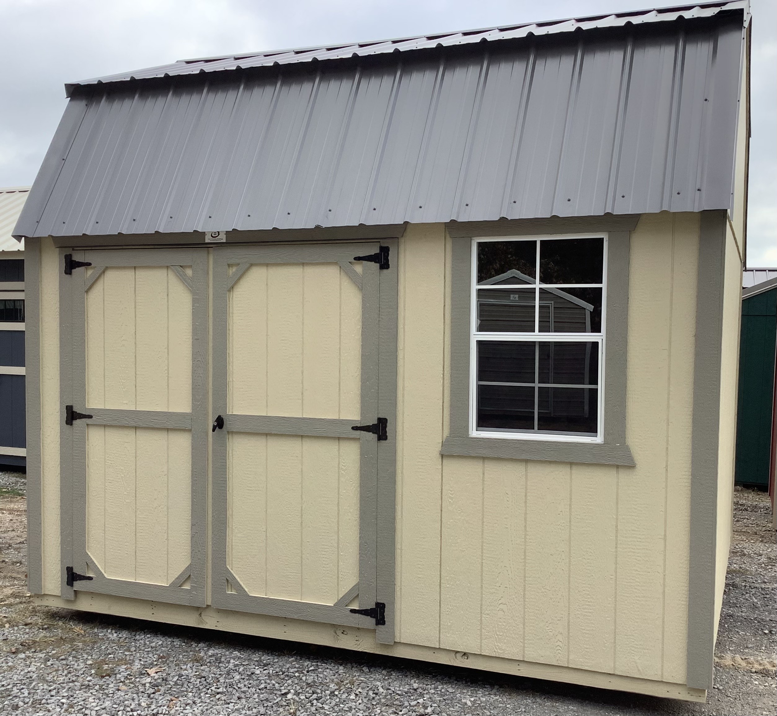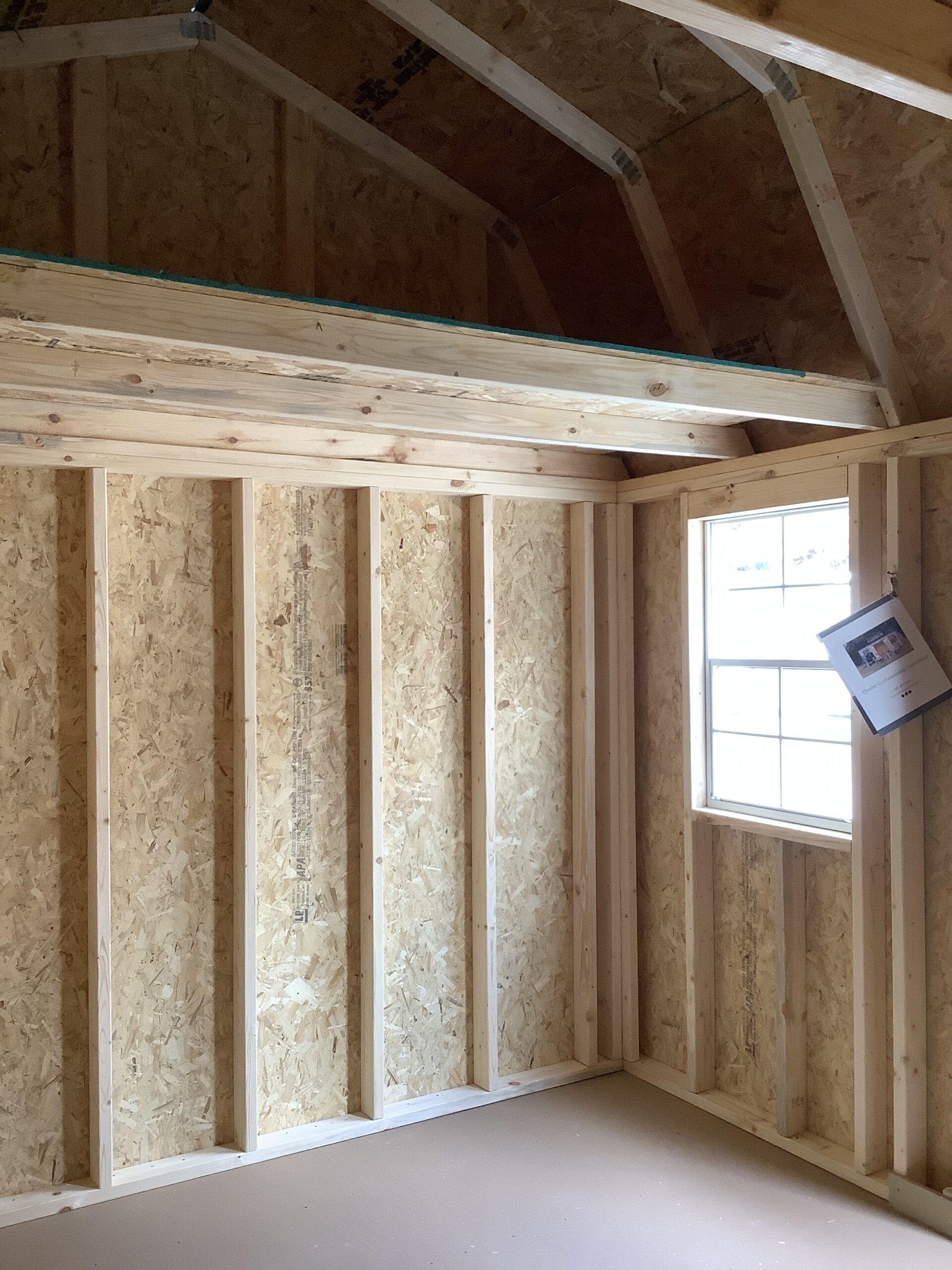 10′ W x 12′ L 1 x 24″ X 36″ Shed Window (WHITE) 1 x 72″ Wood Barn Doors 2 x 10′ Wide Loft Space