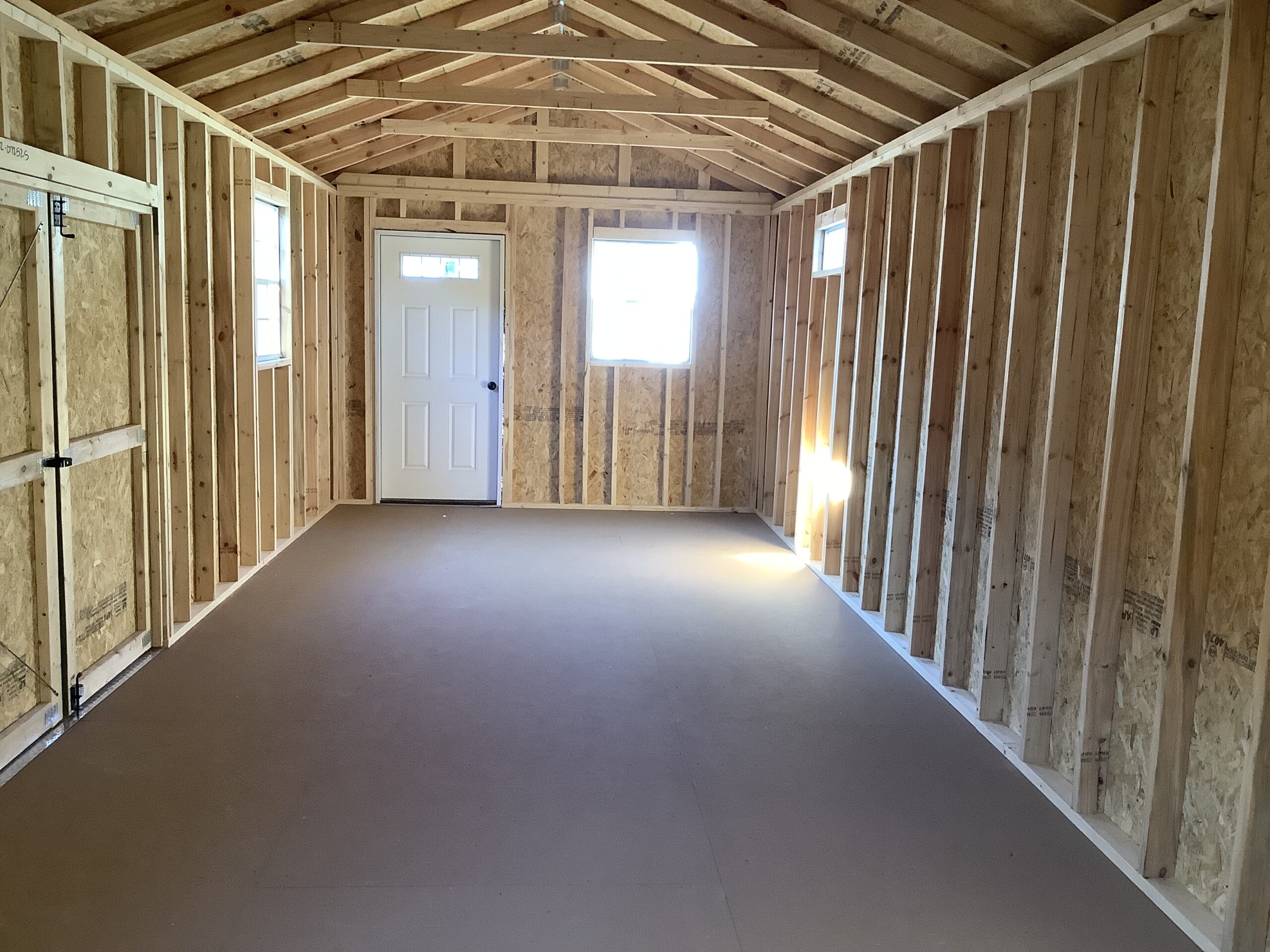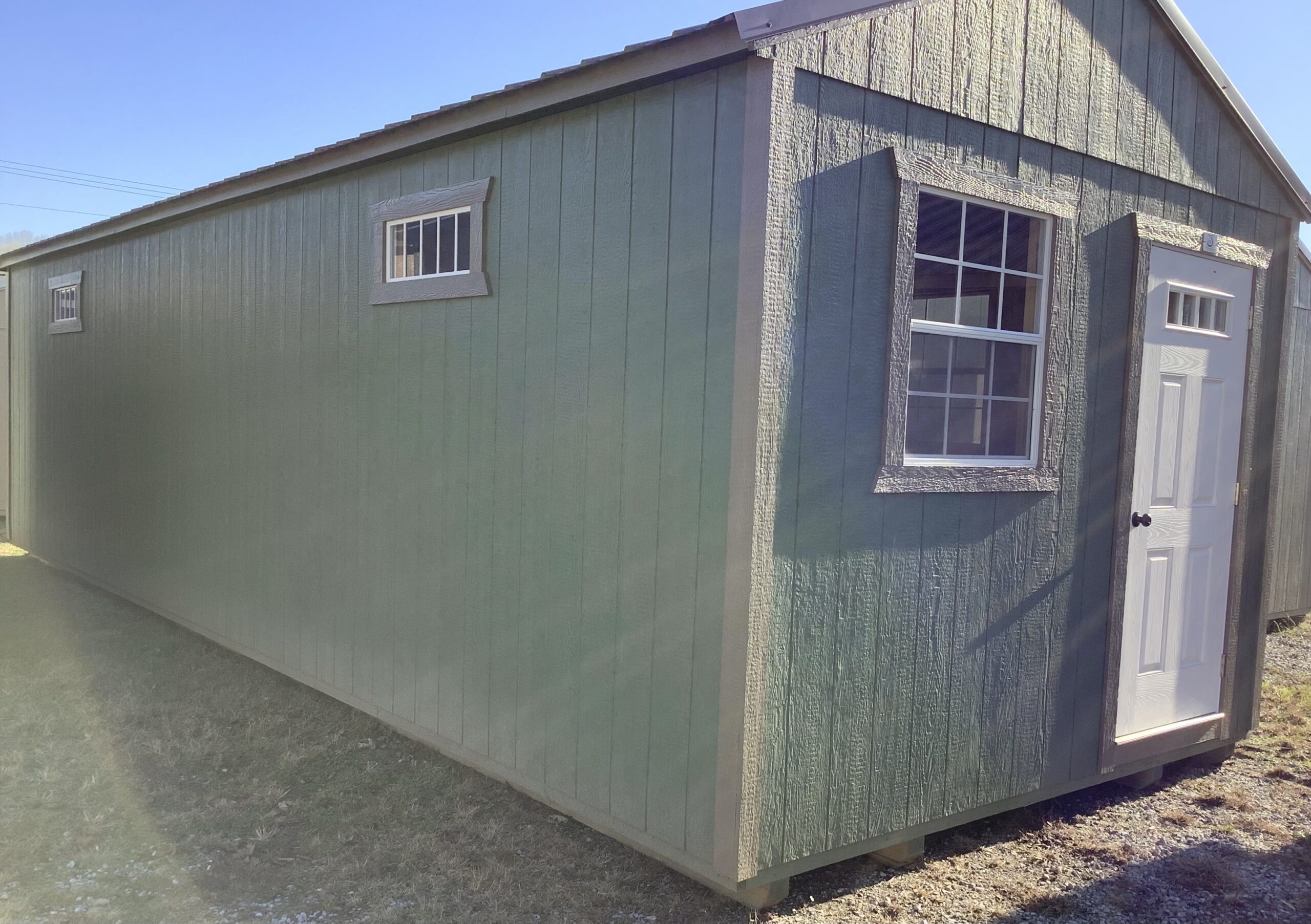 Utility Shed Dimensions (W x L x H) 12′ W x 32′ L 1 x 72″ Wood Barn Doors 1 x Any Color Option On Doors 1 x Shale 1 x 12′ Wide Loft Space 1 x 4-Lite Entry Door 3 x 30″ X 36″ Shed Window (WHITE) 2 x 29″ X 10″ Transom Window (WHITE) 1 x Transom windows same height as others